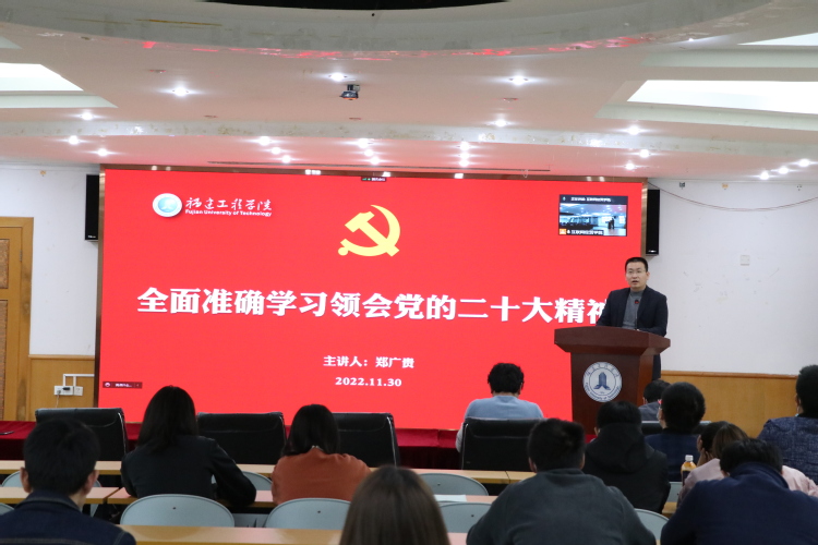 会议伊始,郑广贵传达了《福建工程学院工会委员会关于认真学习宣传贯彻党的二十大精神的通知》精神。随后,他作了一场关于《全面准确学习领会党的二十大精神》的专题讲座,同与会会员集体学习了党的二十大报告,引导广大会员要忠诚拥护“两个确立”,坚决做到“两个维护”,坚定不移在思想上、政治上、行动上同以习近平同志为核心的党中央保持高度一致。郑广贵指出,广大会员要擅于根据专业学科实际,把学深悟透党的创新理论与学习习近平总书记在福建工作期间的重要理念、重大实践结合起来,在实践基础上推动理论创新。