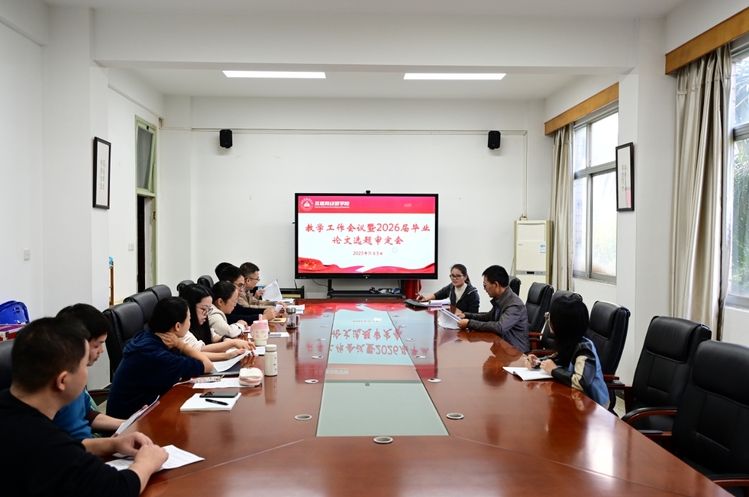11月5日下午,我院在行政楼四楼会议室召开教学工作会议暨2026届毕业生毕业论文选题审定会。学院党委副书记、院长张建中,院长助理,各系系主任及教学办相关工作人员参加会议。会议由张建中主持。