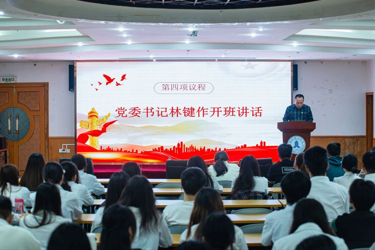林键作开班讲话,他首先代表学院党委向全体学员致以祝贺与欢迎,同时提出四点殷切期望:一是强化理论学习,夯实思想基础;二是锤炼党性修养,永葆政治本色;三是注重学用结合,推动实践转化;四是发挥榜样作用,勇担青年责任。