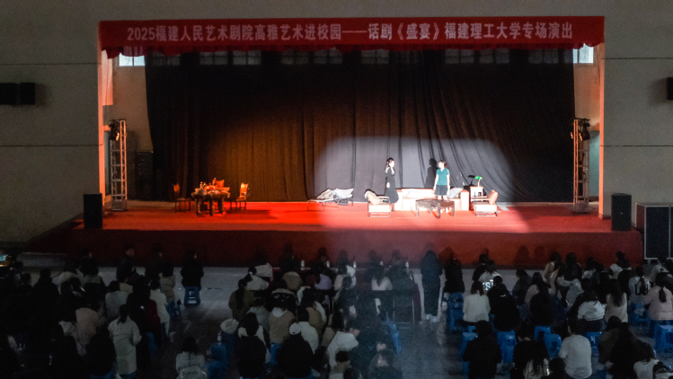 12月9日,由福建人民艺术剧院创排的话剧《盛宴》在福建理工大学鼓山校区多功能厅精彩上演,吸引了400多名师生到场观赏。