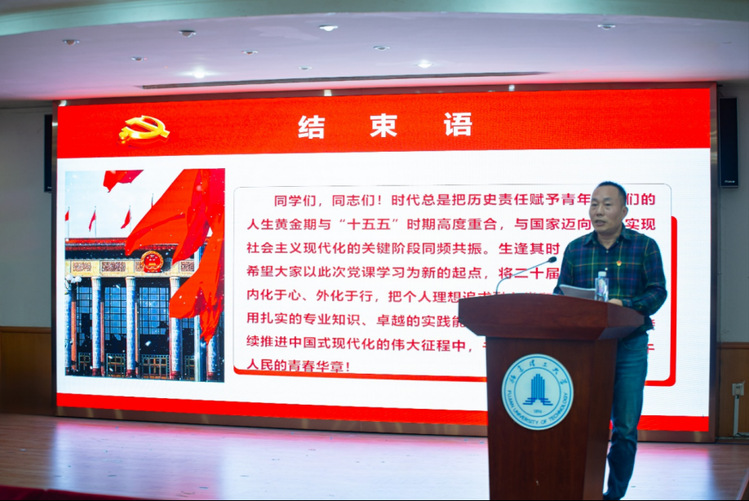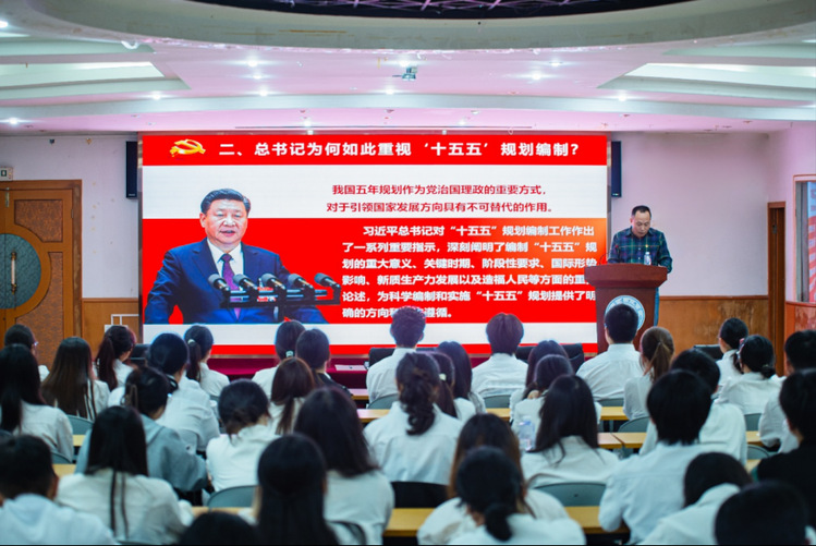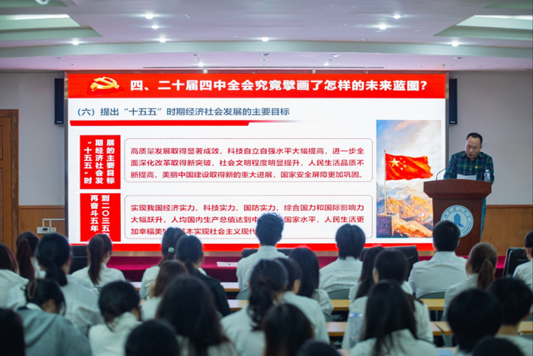 林键从“党的二十届四中全会内涵、‘十四五’取得的成绩、‘十五五’规划编制、党的二十届四中全会擘画的未来蓝图、青年学子如何贯彻落实党的二十届四中全会精神”五个维度系统梳理全会公报核心要义,阐释“十五五”规划建议的丰富内涵,以生动鲜活的案例、通俗易懂的语言,将国家层面的重大改革与青年学子的校园生活、未来职业发展紧密相连,让理论知识变得易于理解。授课最后,林键向全体学员提出四点要求:一要筑牢信仰之基,做政治上的明白人;二要夯实专业之本,做经贸领域的实干家;三要拓展全球视野,做改革开放的促进派;四是锤炼高尚品格,做清风正气的践行者。