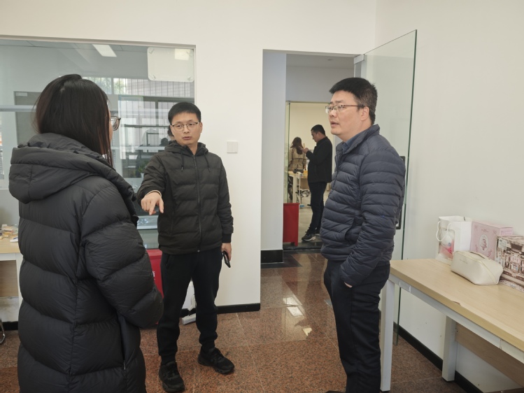 会后,调研组实地走访了学院双创基地,与在场的创业学生代表面对面交流。同学们结合自身项目运营实践,分享了实战心得与发展中的困惑。三创学院教师团队认真倾听后逐一答疑解惑,并聚焦团队架构优化、商业模式闭环设计等方面给予指导和建议。