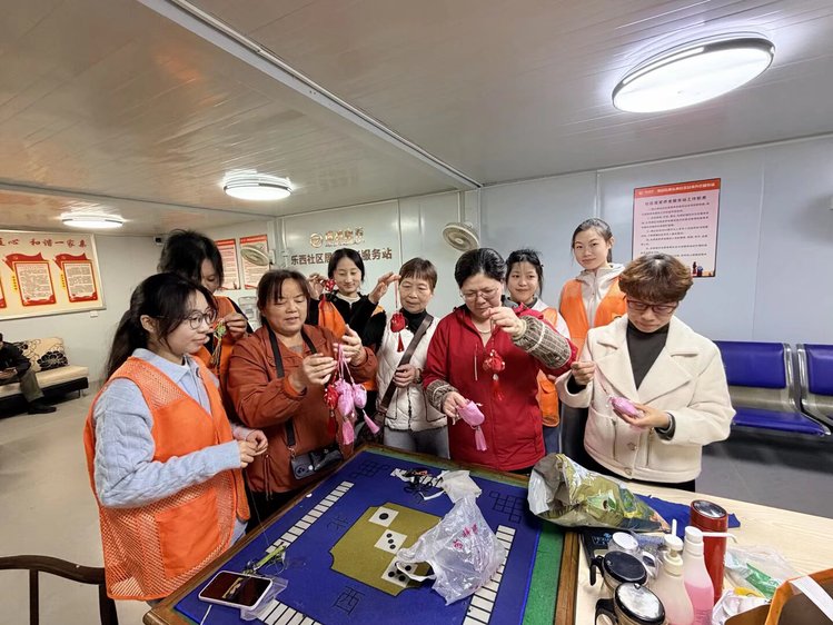 服务队围绕老年人身心健康与精神需求,推出“乐活健身,快乐养老”“‘蒲’满爱意,扇出健康”等特色主题活动,让养老服务既有温度又具内涵。在“乐活健身,快乐养老”系列活动中,精心设计了简易太极、手指操、健步走等适配性健身项目,现场耐心示范动作要领,引导老人们科学锻炼;同时穿插健康养生科普,分享饮食调理、慢病管理等实用知识,帮助老人们树立科学养老理念。“‘蒲’满爱意,扇出健康”活动则将传统文化传承与健康关怀深度融合,志愿者与老人们携手制作蒲扇,选用艾草、薄荷等天然草本材料填充扇芯,在裁剪、缝制、装饰的协作过程中,老人们不仅体验了传统手工艺的乐趣,还收获了兼具驱蚊、安神功效的实用物件。活动间隙,志愿者们与老人们促膝长谈,倾听往昔岁月故事,关心日常起居冷暖,用真诚陪伴驱散孤独,让温暖在互动中传递。