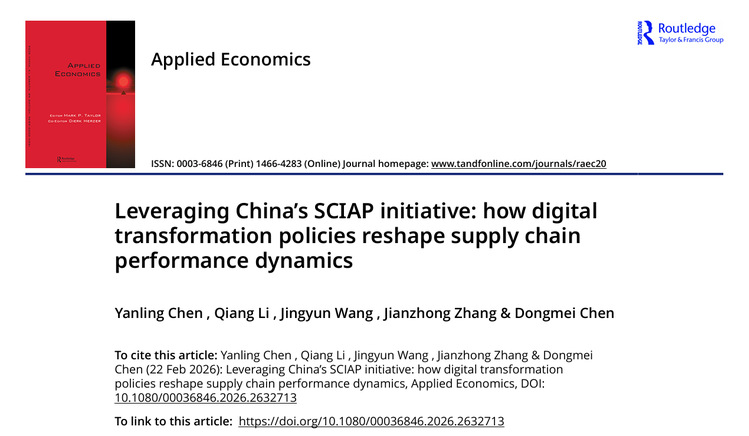 近期,互联网经贸学院陈燕翎老师和其合作者在国际期刊《Applied Economics》发表了题为《Leveraging China’s SCIAP initiative: how digital transformation policies reshape supply chain performance dynamics》的文章。